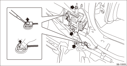 On the passenger’s side, also disconnect the connector of the lap seat belt pretensioner.