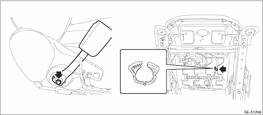 (2) Remove the clip for the inner seat belt harness located under the seat cushion.