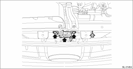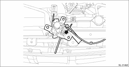 When disconnecting the release cable, refer to “FRONT HOOD OPENER” of “Remote Openers”. Remote Openers > REMOVAL">