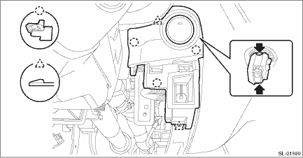 1. Remove the cover assembly - instrument panel LWR driver. Instrument Panel Lower Cover > REMOVAL">