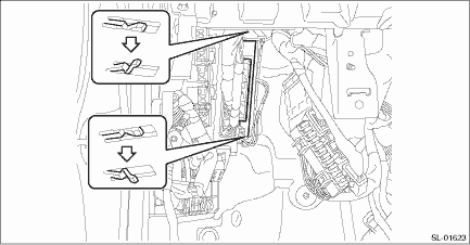 (2) Release the claws, and pull out the keyless access CM from the bracket.