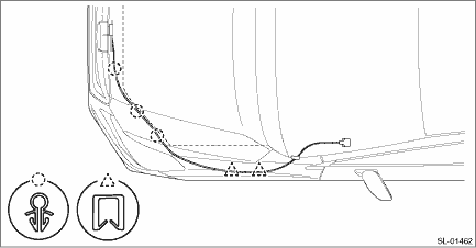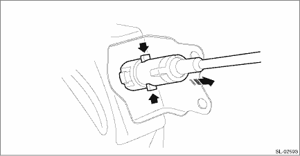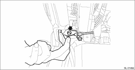 2. After removing the following parts, attach a string to the end of the cable - front hood and remove the cable clip and the cable.