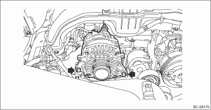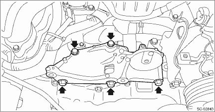 7. Remove the V-belt tensioner assembly. V-belt > REMOVAL">