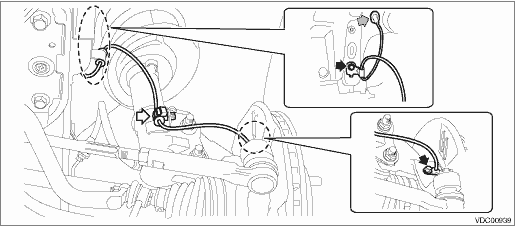 (1) Disconnect the connector of the front ABS wheel speed sensor in the engine compartment.