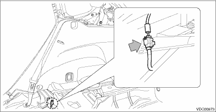 (6) Disconnect the connector of the rear ABS wheel speed sensor.