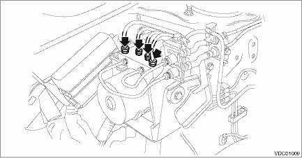 • When the VDCCM&H/U components are removed, be sure to perform the installation according to the installation procedures. VDC Control Module and Hydraulic Control Unit (VDCCM&H/U) > INSTALLATION">