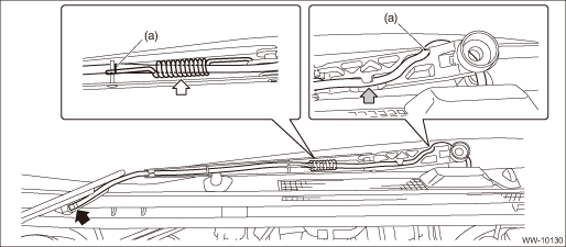 (2) Add the alignment mark (a), and remove the hose from the arm assembly - windshield wiper assistor.