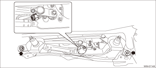 (2) Remove the bolts, and remove the motor assembly - windshield wiper.