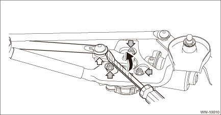 (1) Using a crowbar wrapped with protective tape, disconnect the link assembly - windshield wiper from the link plate.