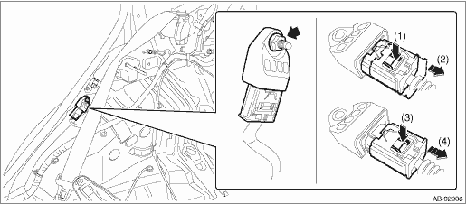 9. Remove the nuts and then remove the curtain airbag sensor. Airbag Connector > PROCEDURE">