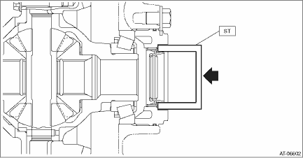11. Using the ST, install the differential side retainer oil seal by lightly tapping with a hammer.