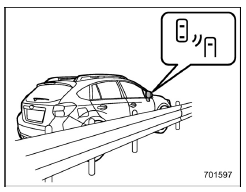 The BSD/RCTA approach indicator light may illuminate when driving close to solid objects on the road or road side (such as guardrails, tunnels and sidewalls).