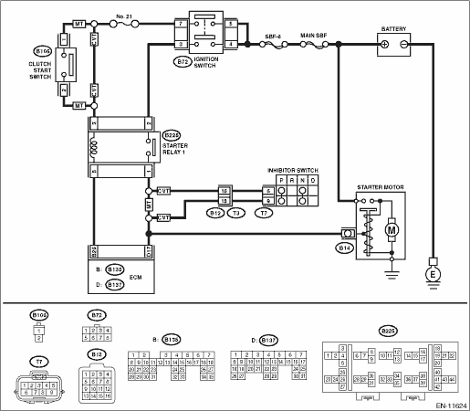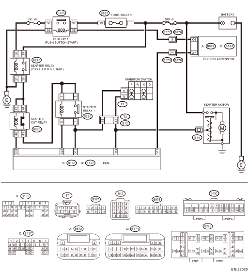 • Open circuit in harness between inhibitor switch connector and starter motor