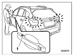 6. Carry the access key and touch the door lock sensor. All doors (including the rear gate) will lock, an electronic chirp will sound once, the hazard warning flashers will flash once, and the security indicator light will start flashing rapidly. After rapid flashing for 30 seconds (standby time), the security indicator light will then flash slowly (twice approximately every 2 seconds), indicating that the system has been armed for surveillance.