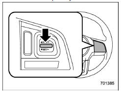 2. When the speed decreases to the desired speed, press the "RES/SET" switch to the "SET" side once. Now the desired speed is set and the vehicle will keep running at that speed without depressing the accelerator pedal.