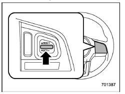 When the difference between the actual vehicle speed and the set speed is small, the set speed can be increased 1 mph (1.6 km/h) each time by pressing the "RES/SET" switch to the "RES" side quickly.