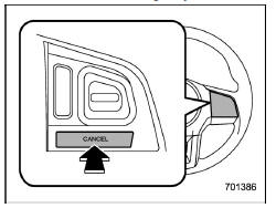The cruise control set indicator light in the combination meter turns off when the cruise control is canceled.
