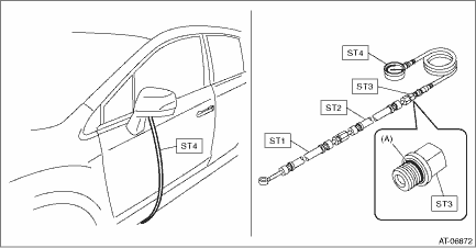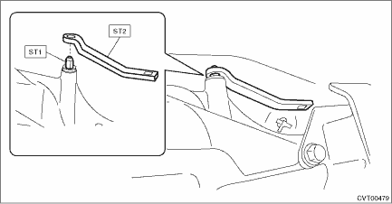 • Directly after the vehicle has been running or the engine has been idling for a long time, the CVTF is hot. Be careful not to burn yourself.