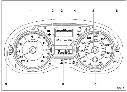 The illustration above is a typical example. For some models, the combination meter may be slightly different than that shown in the illustration.
