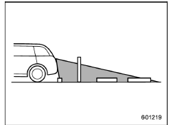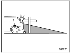 The area above the camera cannot be viewed. If there is an object that has a wide projection on its upper part such as a sign pole behind the vehicle, the projection cannot be seen on the screen.