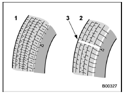 Each tire incorporates a tread wear indicator, which becomes visible when the depth of the tread grooves decreases to 0.063 in (1.6 mm). A tire must be replaced when the tread wear indicator appears as a solid band across the tread.
