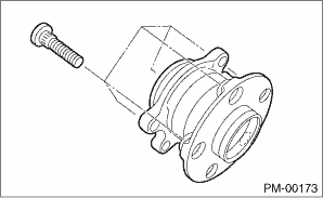 4. If the bearing free play exists in step 2) above, attach a dial gauge to the hub and measure axial play in axial direction.
